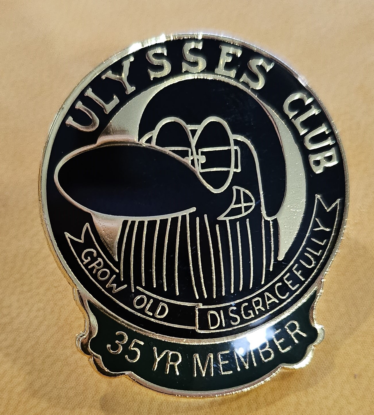 35 year service badge, Gold on black background with green rocker where years of service printed.